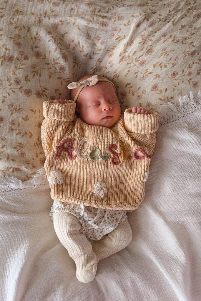 HAND EMBROIDERED ‘BIG SISTER’ SWEATER - SIZE 2